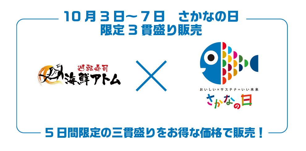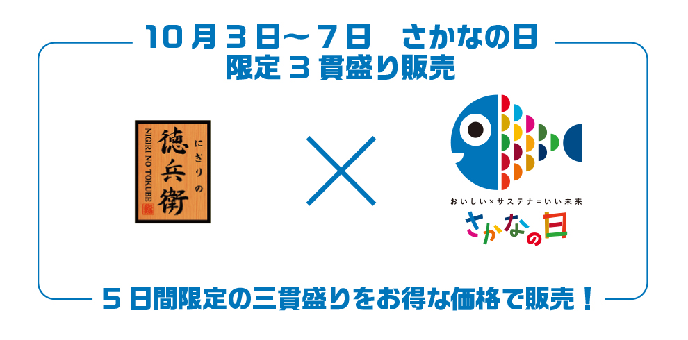 10/3(金)~7(火)、「さかなの日 限定三貫盛り」を販売