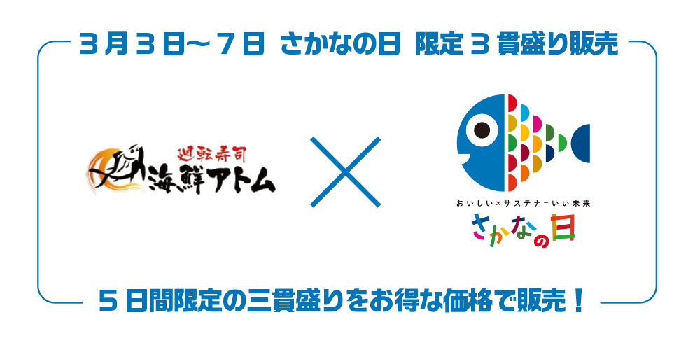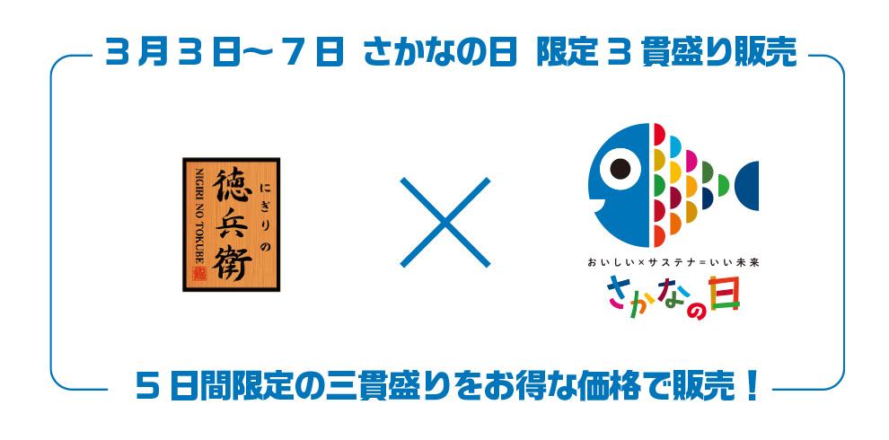 2/3(火)~7(土)、さかなの日限定3貫盛り販売