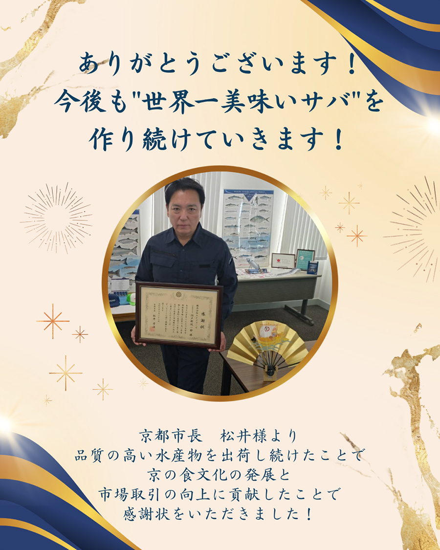 京都市の現市長である松井様より2025/10/28に株式会社エドノフーズは表彰していただきました。 長年京都市並びに京都市場に高品質の水産加工品を出荷し続けた功績が認められた証です。 松井様より頂きました飾り扇子と賞状は事務所に飾らせていただきました。 皆様の期待を今後も裏切らないような製品を作り続けていきますので、よろしくお願いいたします。 【公式サイトURL】 https://edonofoods.co.jp/