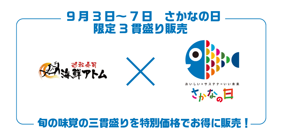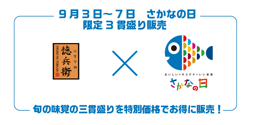 9/3(水)~9/7(日)、「さかなの日 限定三貫盛り」を販売